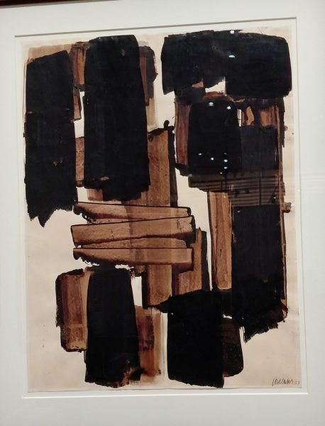 Quoique… Soulages n’a pas toujours peint du noir. Quand il s’est installé à Paris à la fin des années 40, il a surtout utilisé du brou de noix à la riche teinte brune.