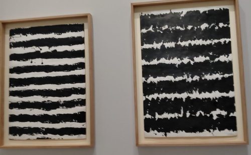 J’ai découvert Soulages, chez lui, dans son musée de Rodez. Découvert l‘Outrenoir sur des toiles où le noir appliqué au pinceau, au couteau, griffé gratté joue avec la lumière qui transforme le tableau selon l’angle d’incidence. De grands tableaux noirs et tant de variété…une visite passionnante. CLIC