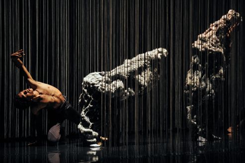 Dancers perform on stage during a rehearsal of the « Yo Gee Ti » ballet by French choreographer Mourad Merzouki on June 21, 2012 at the Opera Berlioz in the French southern city of Montpellier during the 32nd Montpellier Dance Festival. AFP PHOTO / SYLVAIN THOMAS