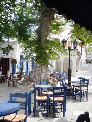 La soirée commence mal ! Impossible de trouver un cybercafé pour retenir l’hôtel d’Athènes vendredi soir (il n’y aura pas de ferries le 1er mai). Personne pour nous renseigner. Les cafés sont WIFI mais si on n’a pas son propre ordinateur impossible de se connecter. La dame de la location de voiture nous assure que Symposion joue le rôle de cybercafé. Mais où est donc Symposion ! Nous sillonnons la route en voiture et ne le trouvons pas. Forcément, il se trouve dans la rue piétonnière qui monte à la Panagia . En trois minutes, j’ai réservé deux nuits à l’hôtel Economy grâce au site de Booking.com.