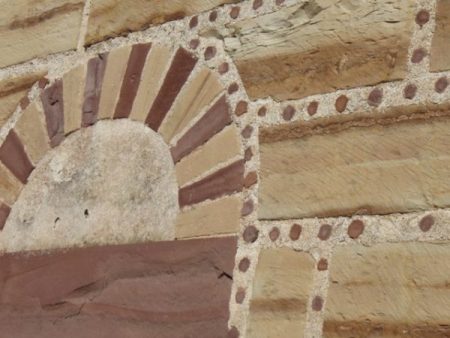 Il nous montre de grosses agrafes en fer rouillé qui retiennent les pierres ensemble. E la suite du séisme de 1881 de nombreuses maisons ont été détruites (5000 morts à Chios). Une belle maison présente des influences ottomanes : les gracieuses arcades orientales surmontées d’un premier étage moderne (reconstruit après le séisme).
