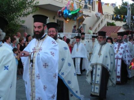 L’église – neuve – se trouve sur le bord de la mer. C’est une paroisse des descendants des réfugiés de l’Asie Mineure et la fête est une commémoration de la »Catastrophe « : la guerre entre la Turquie et la Grèce en 1922 qui a eu pour conséquence l’exil de toutes les communautés grecques d’Asie Mineure. Chios – toute proche – leur a donné refuge . Au cours de la Procession les icônes venues de la rive asiatiquesont promenées dans les rues.