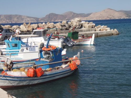 Emporios est un petit port avec trois tavernes, un petit supermarché quelques villas et hôtels, minuscule station balnéaire malgré l’afflux de touristes qui viennent voir la plage de galets noirs de Mavravolia très réputée.