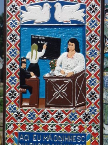 De très nombreuses scènes de la vie quotidienne du village y sont retracées en couleurs vives. La bonne cuisinière à ses fourneaux, la fileuse, la maîtresse d’école, le communiste, le berger et son chien, le chasseur…Nous trouvons la stèle de la petite fille morte d’un accident de la route. Nous voyons aussi les bouteilles, causes de nombreux décès au village.