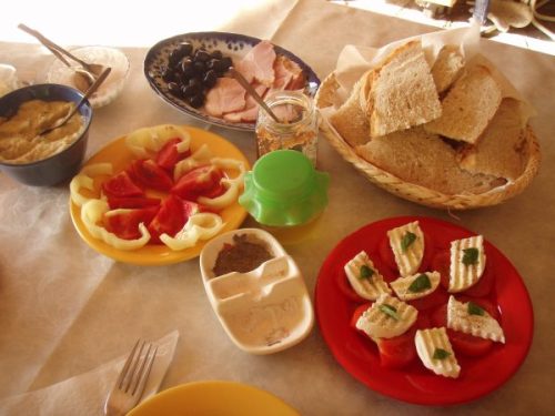 Elena et Adrian sont adeptes de la Slow Food dont les fondateurs sont venus d’Italie goûter aux fromages d’Adrian. La telemea est servie ce matin sur une rondelle de tomate avec une feuille de basilic et un trait d’huile d’olive importée d’Italie.