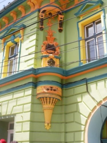 Dans la ville basse, de nombreuses banques bordent la rue principale. Elles occupent des maisons colorées décorées de stucs et volutes gracieuses. D’autres maisons ont un style moyenâgeux, historicisme éclectique austrohongrois comme nous l’avons vu en Hongrie.