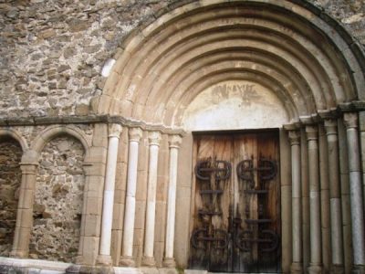 La citadelle de Cisnadioara est perchée sur un piton rocheux dominant la ville. Elle se détache sur la forêt touffue. Plus bas, le village aux toits de tuiles et aux façades multicolores, a un aspect accueillant. Une dame vend les billet au bas des marches (5LEI) . La montée est courte mais bien raide. Essoufflée, j’arrive devant une petite porte percée dans l’épaisse muraille des remparts. Une forteresse austère occupe le sommet de la colline. J’entreprends d’en faire le tour. Surprise : un merveilleux porche roman avec de délicats chapiteaux et une porte à ferronnerie – fermée. Ce n’est pas un château ni un donjon que protège l’enceinte mais simplement une église.