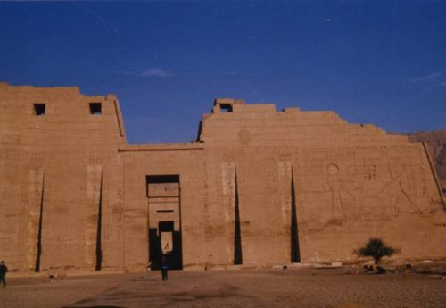 Notre chambre est encore occupée. Nous buvons un thé et Mahmoud nous conseille d’aller visiter le temple de Médinet Habou.