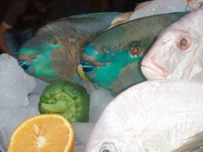 Nous préférons aller nous promener sur la corniche qui sépare les hôtels des restaurants de plage. Il me semble que nous avons quitté l’Egypte. Les menus sont en Anglais ou en Allemand. Les caractères arabes ont disparu. Les seuls Egyptiens présents sont les serveurs des restaurants qui proposent de la nourriture internationale : moussaka, pizzas, pâtes, poissons grillés (on est à la mer) et même du bacon de porc (dans le texte). Les boissons alcoolisées ne se cachent pas. Les touristes dévêtues déambulent. Certains bikinis sont minimalistes.