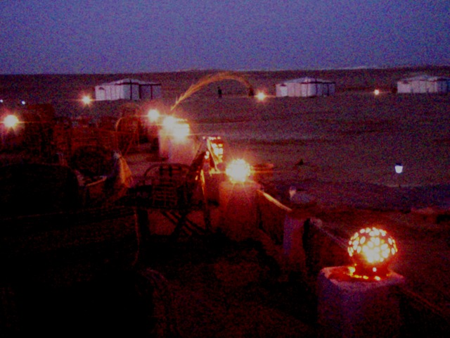 Pour admirer le coucher du soleil, nous nous installons sur une butte autour du bassin rond d’une source. D fait remarquer qu’il aurait été prudent de signaler le bassin avec des lampions