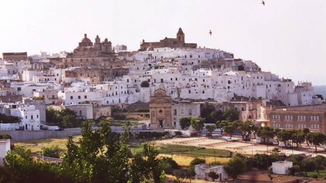 Ostuni n’est distante de Tenuta Deserto que de 11 km.La route d’Ostuni est très agréable à travers oliveraies et vergers d’amandiers. En chemin, nous faisons un crochet pour découvrir de jolis trulli cachés dans les oliviers. Cette campagne est très construite: maisons soignées avec une allée bornée de bornes et créneaux chaulés de blanc, jardins pimpants.