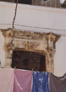 Une jolie placette fait face à la cathédrale. La gracieuse loggia du palazzo Vescovile l’enjambe en une arche de pierre blonde tranchant sur le blanc éblouissant. Tous les palazzi sont chaulés de blanc. La pierre sculptée se détache. Le vicolo castello nous conduit à une vaste terrasse d’où l’on voit la mer bleu foncée et le moutonnement des oliviers. Du Castello, il ne reste plus que des murailles blanchies . Les ruelles blanches nous inspirent beaucoup.