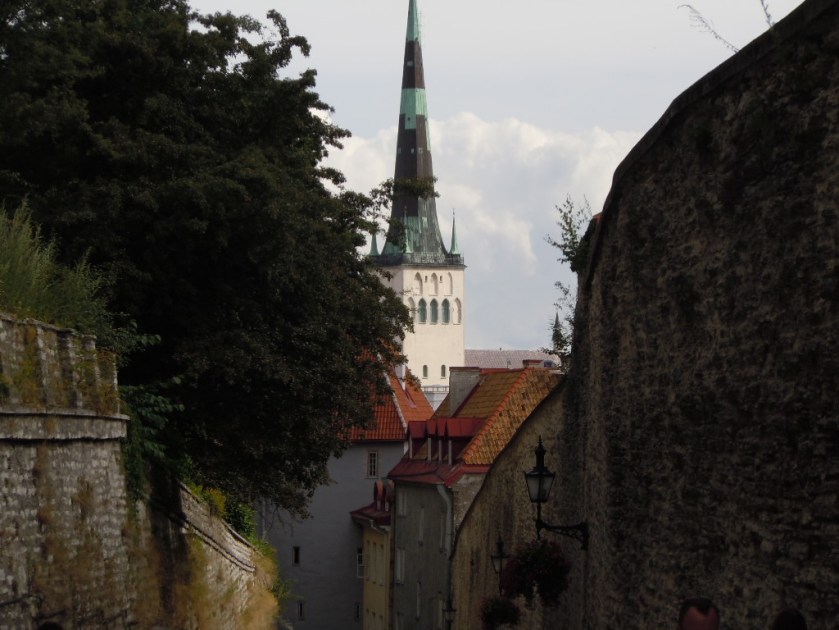 Malheureusement Toompea est rapidement envahie par les groupes de touristes sortis de quatre énormes bateaux de croisière, tous étiquetés, cohortes bouchant les petites rues pavées. Deux points de vue au dessus des remparts permettent d’avoir un magnifique panorama sur les remparts, les tours et les toits de la ville mais les groupes se pressent et kil faut jouer des coudes pour avoir une bonne place. Les guides brandissent des parapluies de couleurs vives pour rallier leur troupeau.