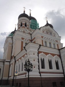 Nous montons par les marches à la colline de Toompea en passant devant la grosse tour Kiek in de Kok, énorme tour chapeautée d’un toit de tuiles coniques (bien rouge). Plus tard dans la journée, on aurait pu y tirer à l’arc.