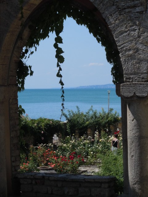 Bordant la plage, la roseraie est magnifique. Les roses se portent bien en Bulgarie ! Elles embaument. Au niveau supérieur, une allée de lys au parfum entêtant conduit à un « cloitre »aux arcades romantiques – fausses ruines rappelant la Côte d’Azur ou la Riviera. L’architecte qui conçu le « nid » de Marie était italien.