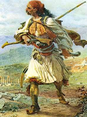 « Clephte aux yeux noirs descend dans les plaines : son fulsil doré sonne à chaque pas ; il dit aux vautours : « Ne me quittez pas, je vous servirai le pacha d’Athènes »