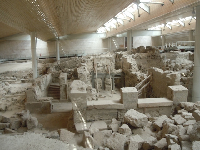 Comme Pompéi? Akrotiri fut anéantie par une pluie de cendres qui a conservé les maisons et leur contenue dans l’état où elles étaient lors de l’éruption.
