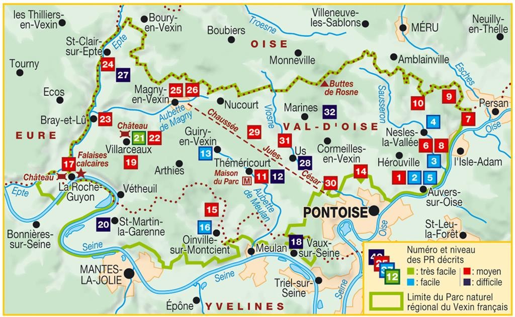 Randonnée dans les bois du Parc du Vexin avec de nombreux PR très bien balisés. Des frais ruisseaux, des moulins à eau, les bords de l’Oise.