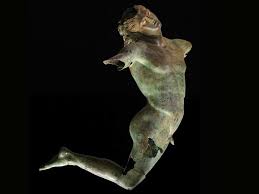 Le Musée du Satire est ouvert depuis peu (2003) dans une belle église à la façade très sobre. La statue est installée dans une enceinte noire, seule sur un piédestal. C’est une belle statue de bronze. Dans le reste du Musée des objets ayant un rapport avec la mer et l’archéologie marine sont très bien présentés dans des vitrines accompagnées de panneaux explicatifs très intéressants commentant le commerce en Méditerranée. En exergue : une citation de Braudel. Une vidéo raconte la découverte et la restauration du Satire. Tout le Musée est conçu pour mettre en valeur une seule statue. Plus je la regarde, plus je la trouve belle, si attachante que j’ai du mal à quitter le musée. C’est un éphèbe dansant en extase, comparé à un derviche tourneur. Son visage est tourné vers le ciel, ses cheveux aux longues mèches sont entraînés dans le mouvement tournant. Tout suggère le mouvement. Le bronze, patiné en mer a un aspect irréel. Après cette visite, nous rentrons au gîte. Pas envie de voir d’autres images qui brouilleraient celle de la statue.