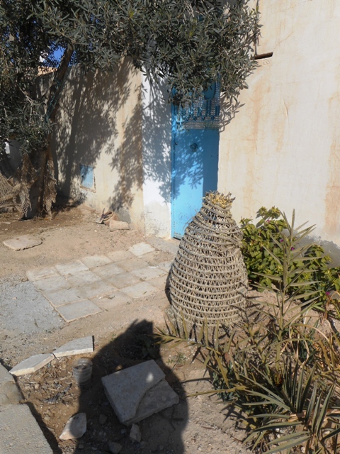 Premier arrêt à un port de pêche très actif ayant un petit chantier naval. . Rochdy nous raconte la pêche au poulpe. Les pêcheurs à pied ramassent des bigorneaux ou des murex qui serviront d’appâts. On pêcher à la nasse (drina) en vannerie ou en plastique bleu ou à la gargoulette. Le poulpe, attiré par l’appât se cache dans la gargoulette percée au fond. Pour le faire sortir on injecte par le trou du détergent, liquide à vaisselle qui fait fuir le poulpe. Nous photographions un tas de gargoulettes attachées par des cordelettes.