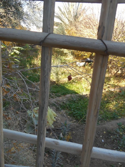 La promenade tourne à l’escalade. Le jeune guide présume-t-il de mes forces ? Il m’indique prises de main et prises de pieds. Finalement je grimpe encore bien. En chemin, il ramasse des minéraux transparents qui se clivent bien et qu’il nomme « mica » alors que cela ressemble à du gypse. Au sommet il me montre la route de Midès puis nous descendons en traversant ds jardins enclos dans des murs de feuilles de palmiers : fèves, fleurs (zinnias) grenades et petits piments rouges ;