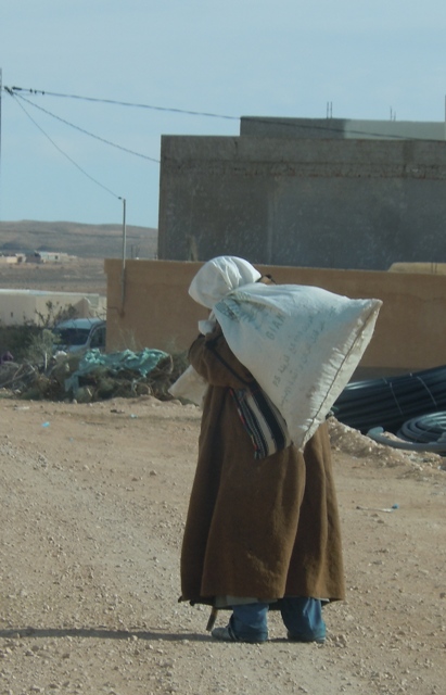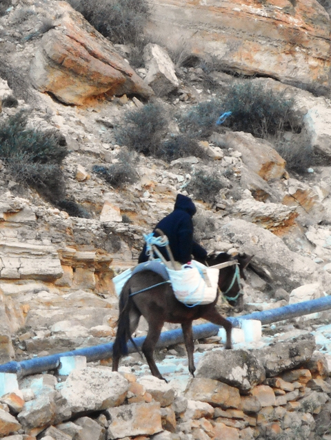 Au village, nous croisons des hommes de tout âge et même des enfants encapuchonnés dans des burnous bruns. Capuche pointue, manches vides pendantes. Nous avons pris pour un manchot le premier que nous avons vu d’autant plus qu’il était bancal et contrefait. Tous ont adopté cette solution pour ne pas se geler les mains. Les kilims tissés à Toujane sont suspendus aux façades malheureusement nous n’avons pas le temps de rendre visite aux tisserands et j’ai peur de me laisser tenter par un kilim rouge aux nombreux motifs qui me fait de l’œil.