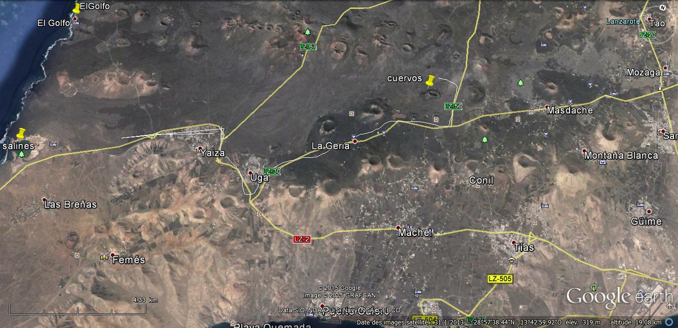 Pour rentrer, nous nous égarons dans les ronds-points de Yaiza qui se ressemblent tous. Le GPS nous ramènera à bon port à Mozaga.