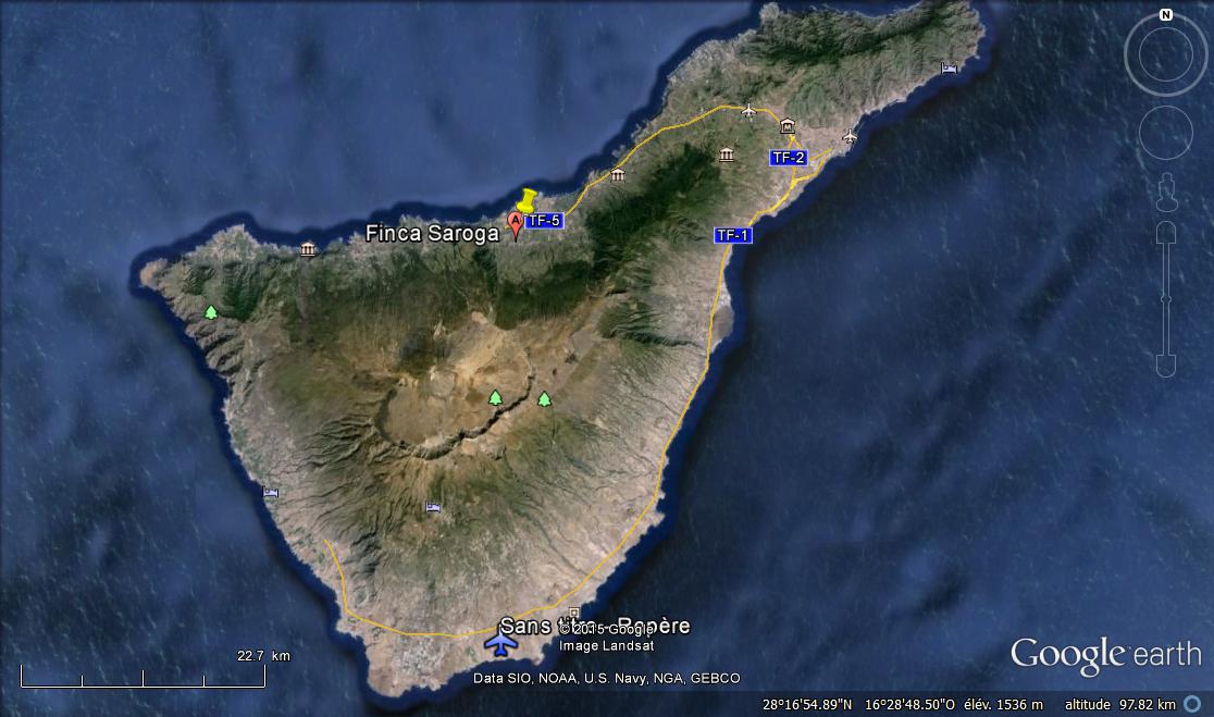 Un chemin de croix est en cours d’aménagement. Chaque station est illustrée par un azulejo plaqué sur un petit autel blanc. En haut, nous découvrons le cratère du petit volcan et la chapelle blanche, toute seule sur son esplanade de ciment. De là, nous apercevons les neiges du Teide étonnamment proches. Le sommet est caché dans les nuages. Les villages traditionnels de maisons cubiques avec des terrasses rappellent un peu les maisons marocaines. Une grande part d’entre elles est chaulée de blanc. D’autres ont adopté le crépi jaune ou orange. Les terrasses sont carrelées. Vu de dessus, elles forment une mosaïque en camaïeu très plaisante.