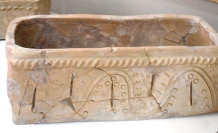 Les autres salles du Musée sont moins spectaculaires. Des poteries grecques, on ne voit que des coupes avec des traces de décor peint mais rien en bon état. Le nombre de coupes cassées et les noms inscrits sur les débris s’expliquerait par une hypothèse amusante : au cours d’un banquet on aurait cassé la vaisselle en « buvant à la russe ». Les Grecs modernes adorent casser les assiettes ; nous en avons été témoins à Santorin l’an dernier le jour de Pâques. Pas de sculptures ni de monnaie. Les armées d’Alexandre n’auraient elle fait que festoyer ? Non ! Ils tissaient aussi : les métiers à tisser grecs étaient très appréciés dans la région.