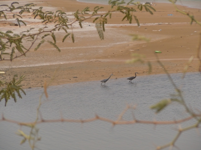 7h15 : les oiseaux fêtent le lever du jour. Promenade sur la plage. De nombreux hommes font de la gymnastique pour entretenir une musculature impressionnante. Un vieil homme, assis sur un billot de bois, lit le Coran. Devant un café de plage, on brûle des déchets sur un petit feu où chauffe la bouilloire du thé. Des hommes courent. L’un d’eux, un peu rondouillard, essoufflé, s’arrête à mon niveau, me demande une photo « je suis lutteur » annonce-t-il fièrement. Après un cap, la plage change d’aspect, elle est couverte de belles pirogues, peintes de dessins colorés, certaines ornée de petits drapeaux français ou belges fichés sur la proue. Des chats traînent à la recherche des restes. Quatre hommes écorchent un oiseau marin comme si c’était un lapin. La plage, ici est jonchée de saletés, les égouts s’y déversent. Contraste avec la plage des hôtels, gardée par les vigiles.
