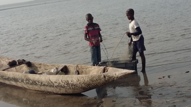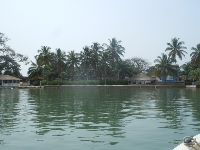 12km jusqu’à Elinkin où nous nous embarquerons sur une pirogue pour l’ile Carabane . Nous ne nous attardons pas au marché d’Elinkin. Pathé, le piroguier de l’hôtel nous attend. La traversée dure 30 minutes. Nous avons la chance d’apercevoir un (ou deux) aigles-pêcheurs et les ailerons des dauphins.
