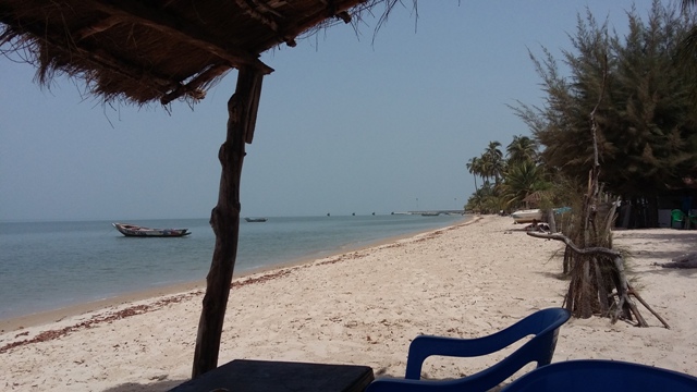 Le restaurant est dans une paillote ronde en bordure de corniche. Pour déjeuner, trois rondelles de tomates, trois de concombre en entrée, du tiéboudiène avec du poisson, chou, carottes, navets, un peu meilleur que celui des Bolongs, mais rien d’exceptionnel (sauf le prix 5000Francs).