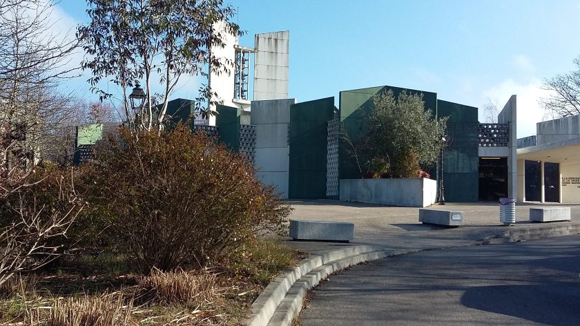 La copropriété de Parly2 comprenant 278 bâtiments et plus de 5000 logements, 8 piscines et 7 courts de tennis est la plus vaste copropriété d’Europe. Le promoteur , Robert de Balkany acheta le terrain aux 2 soeurs Poupinet, les persuadant en promettant d’adjoindre une église (cela me rappelle le projet immobilier d’Ostie dans le roman Suburra que je viens de terminer). Avec l’architecte Claude Balik qui conçut aussi le centre commercial Parly2, c’était la « promesse d’un nouvel art de vivre ». Les premiers bâtiments sortirent de terre en 1968. Nous traversons donc un quartier verdoyant avec des assez petits immeubles disposés de quinconce, chaque appartement s’ouvre sur un balcon qui court sur toute la façade. Ajout postérieur? les vérandas qui font les coins de presque tous les étage. Règne de la verdure, des massifs fleuris, de l’ordre et de la prospérité. Ces immeubles qui ont maintenant 40 ans paraissent presque neufs : quelle différence avec le Palais d’Abraxas de Noisy-le-Grand que nous avons découvert lors d’un autre voyage métropolitain, pourtant beaucoup de 15 ans plus récent mal entretenu!! Le centre commercial Parly2 a été rénové récemment. Décoration classieuse, marbre brillant, canapés design. Tout respire la prospérité et le luxe!Ambiance à l’opposé du Centre des Flanades à Sarcelles que nous avons traversé lors du précédent voyage métropolitain!