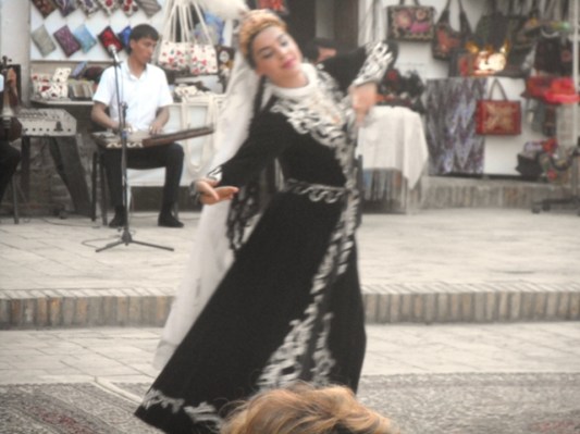 A cette polyphonie se mêleront d’autres destins de femmes : celui de Rano, la jeune fille d’Andijan, traumatisée par le massacre de 2005, dont le mariage arrangé est suspendu à une éventuelle grossesse. Destin flamboyant de Tamara Khanoum, danseuse célèbre du temps de l’Union soviétique, arménienne qui exportait la culture de l’Union soviétique, comme les chœurs de l’Armée rouge, contribua à l’effort de guerre pendant la Seconde Guerre Mondiale. Bibi Khanoum – femme préférée de Tamerlan – construisit pour lui une mosquée gigantesque  (que nous avons visitée quelques semaines après la soirée du livre).