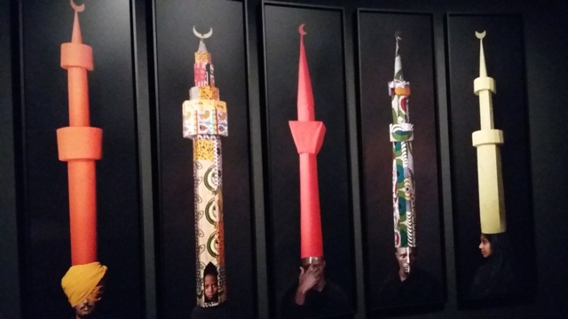 les confréries soufistes sont représentée avec les 7 étendards de la Tijaniyya par Rachid Karaïchi qui explique dans un vidéogramme la symbolique de son oeuvre : bannières de calligraphie.