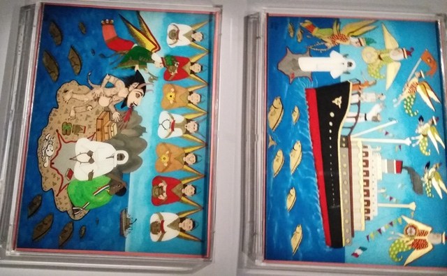 Dans l’aire Swahilie de Mogadiscio à Zanzibar les peintures Tingatinga de Tanzanie dans le style d’Eduardo Saidi (1937-1975) racontent l’histoire de Zanzibar avec le commerce des esclaves et de l’ivoire