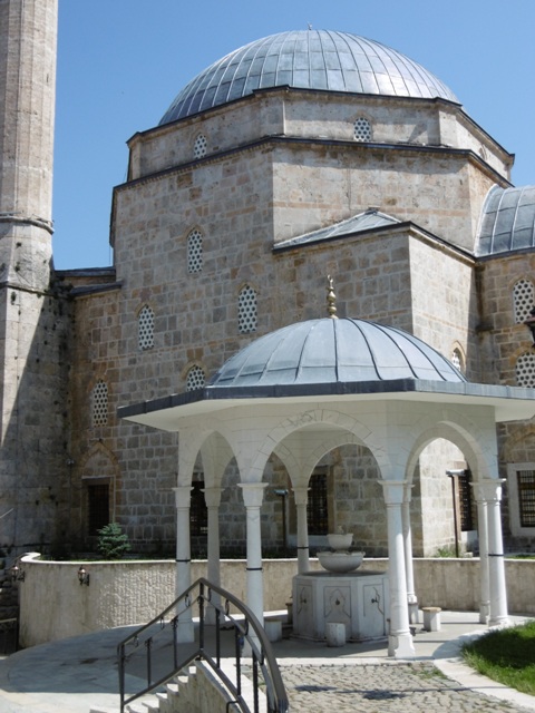 En face du pont de pierre – pont ottoman du 16ème siècle – le consulat de Turquie, façade blanche et drapeau rouge, est la première maison que je remarque, presque aussi importante que le grand hôtel Théranda. De l’autre côté du pont se tient la mosquée Sinan Pacha (17ème siècle)