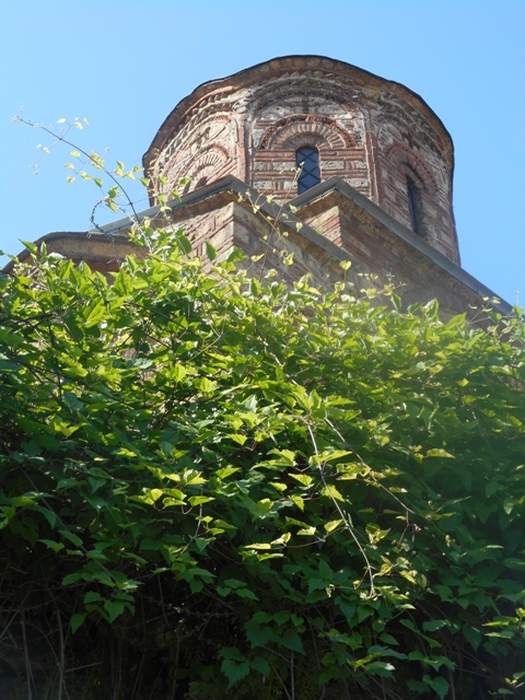 A l’hôtel, j’ai retrouvé la Wifi, découvert l’attentat de Samedi 3 à Londres. Personne n’a l’air au courant ni spécialement affligé. Est-ce que leur guerre dont le souvenir est encore frais les fait relativiser ? Il s’est déroulé ici des atrocités. Peut être le fait que ces attentats sont faits au nom de l’Islam les rend muets. CNN, la BBC, France 24 ne parlent que des attentats. Ici, aucun echo. Je passe une bonne heure à pianoter et à Googliser Prizren , on n’a pas apporté de guide-papier du Kosovo. Je trouve l’itinéraire pour aller à l’église Ste Veneranda (Ljeviska) (1606-1307) transformée par la suite en mosquée puis en 1933 ; en église. Suivant l’itinéraire de Googlemaps, bravant les gouttes, je pars en expédition. La mosquée Sinan Pacha est ouverte, j’y découvre la jolie décoration peinte. La rivière charrie de l’eau marron et a englouti les îles herbeuses. L’église Ljeviska est fermée, sous la protection de l’UNESCO et de rouleaux de barbelés. Selon les panneaux, elle est en restauration amis je ne vois pas trace de chantier.