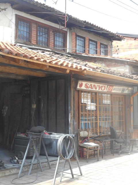 L’avenue Tony Blair plantée d’un jardin nous conduit à un rond point avec un centre commercial de verre et d’acier et une station service. Là commence le Vieux Bazar oriental dont les maisons sont toutes identiques (rénovées ou reconstruites ?). Comme dans tout bazar, les commerces sont regroupés par activité, tous les bijoutiers sont voisins et présentent tous de beaux colliers, bracelets ou bagues en filigrane d’or ou d’argent, parfois de petit brillants ou de belles pierres dures serties d’argent. Avec les bijoutiers on trouve les boutiques de mode des marques internationales Adidas, Levis…Les chaussures de sport sembles les plus coûteuses et luxueuses que les chaussures de ville aux talons vertigineux.