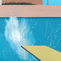 On arrive à la Californie (1964), les cartels notent l’influence de Warhol . Un portofolio montre les photographies très belles, ayant inspiré les tableaux de piscine ou de scène de douches. A bigger splash a aussi fiat l’objet d’une vidéo. mon préféré est Pool & Steps, le nid du Duc (1971 ). merveilleuses étude de la transparence de l’eau. Occasion aussi d’introduire des nageurs peu vêtus.