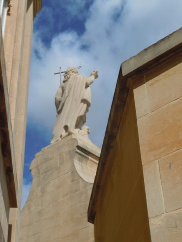 Pour Xewkija c’est facile, il suffit de prendre pour cap l’énorme coupole qui dépasse de tous les bâtiments et qui se voit de partout. Xewkija (prononcer cheoukiya) est un village tranquille avec de belles maisons de pierre, des balcons à balustre, des frontons, des colonnettes torses et des statues pieuses. La monstrueuse église « Rotunda » ou église Saint Jean Baptiste se dresse sur une vaste place on atteint le parvis par une volée de marches. Selon le guide Evasion, ce serait la 3ème plus grande coupole au monde et elle aurait pour modèle Santa Maria della Salute de Venise. C’est une église très récente construite de 1951 à 1971 par les habitants qui se seraient cotisés, donnant des fonds mais aussi de leur travail, ayant mobilisé leurs charrettes pour aider les bâtisseurs. Dans l’église au moins 6 femmes et un homme sont armés de balais et de chiffons. Etrangement, ils balaient des plumes et astiquent les bancs.