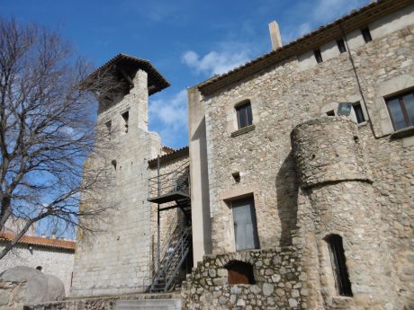 Arrêt à Capmany village très charmant : l’église est dominée par une tour carrée, peut être le clocher, à l’autre bout de la nef, se trouve une tour ronde ou plutôt la moitié d’une tour ronde. Accolée à l’église, une arche passage vers la très jolie place de la Mairie dans un hôtel 16ème . La pierre de construction ici est le granite.