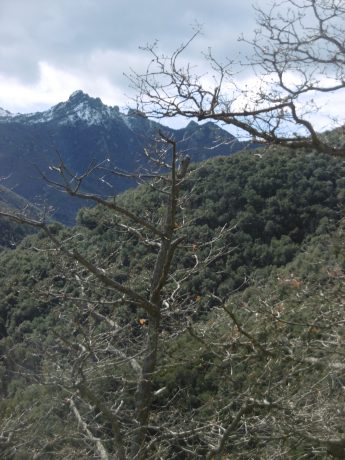 Dernière pause à l’abri d’une maison ruinée et taguée. C’est le goûter, je n’ai prévu que 3 caramels et justement je ne les trouve plus. La dernière partie de la randonnée est facile toujours en descente vers Pla de Corts. Je descends du covoiturage au pont du Diable de Céret, rentre légère et guillerette, trop légère. Mon sac est vide, la parka a disparu ? quand est-elle tombée du sac ? Peut être à la pause du goûter ; On reprend la voiture et je la rejoins à pieds. Mais je ne la trouve pas. Il y avait aussi mon bonnet écossais et les gants de soie noirs. Belle rando mais mauvais sort !