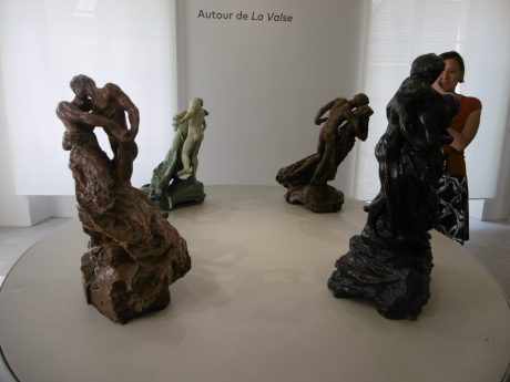 Apothéose du musée : la salle Autour de la Valse : une série de 4 couples de valseurs , bronze, grès, plâtre. le médiateur du Musée raconte que Debussy, très ami de Camille Claudel possédait un tel groupe.