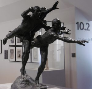 Enfin on arrive à l’étage pour Le corps en mouvement où je découvre des danseuses, danseuses classiques ou antiques mais aussi inspirées de Loie Fuller et sa danse du voile ainsi qu’Isadora Duncan : un groupe de Bourdelle. Les sportifs sont aussi montrés en mouvement.