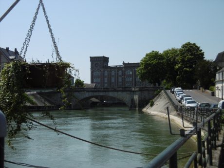 Dans les rues je remarque de belles maisons à pans de bois. D’autres sont en brique ou brique et meulières. Les bords de Seine sont agréables; je remarque un bateau-lavoir vert, qui est une véritable blanchisserie. Un grand moulin enjambe la Seine : c’est le moulin Sassot construit au 19ème siècle détruit puis reconstruit en 1908, maintenant le Siège de l’entreprise Soufflet qui est justement une très grosse entreprise en minoterie et de malterie. Cette construction de brique ressemble un peu à la chocolaterie Menier de Noisiel. Nous aurions dû arriver plus tôt pour prendre notre temps de nous promener dans cette ville charmante, chercher peut être la Maison de Camille Claudel et celle où Flaubert est venu en villégiature.
