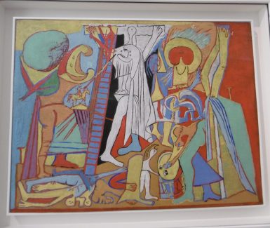 Crucifixion - la commande et les premières esquisses : pour le Pavillon espagnol de l’Exposition internationale des Arts et Techniques 1937. La peinture devait occuper un mur entier. L’idée initiale était d’exploiter le thème du peintre et de son modèle.