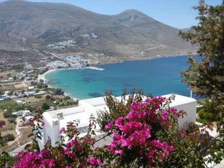Aegiali vu de l’Hôtel Aegiali, le port et la plage
