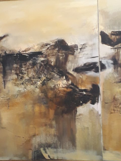 Dans tous ces tableaux abstrait où seule la date peut guider le spectateur, je me prends à imaginer un paysage hivernal, une rivière blanche glacée, un pont,.  Je laisse errer mon imagination bien loin sans doute des intentions de l’artiste.
