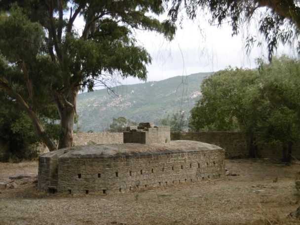 Nous nous installons en face du pénitencier de Coti Chiavari , pénitencier agricole construit sous Napoléon III à la place de l’établissement construit du temps de Gènes. Les bâtiments rénovés (hangars à foin) sont impressionnants, les constructions annexes sont plus énigmatiques comme ce haut campanile ou une construction ovale (une citerne ? un magasin ?) Le Guide Evasion fait état d’une mortalité inouïe parmi les prisonniers (110 en un an sur une population carcérale de 500), en raison du paludisme et du travail très dur.